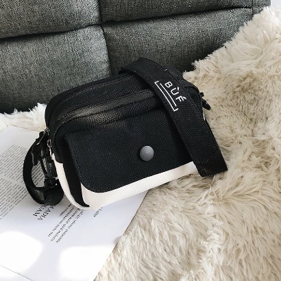 กระเป๋าผ้าcanvasสีตัดสายกว้าง