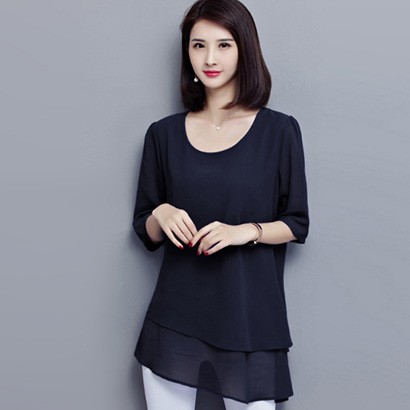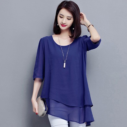 เสื้อชีฟองสีล้วนแบบคล้ายสองชิ้น