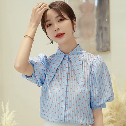 เสื้อเชิ้ตลายจุด ดีไซน์คอปกสวยโดดเด่น