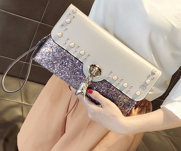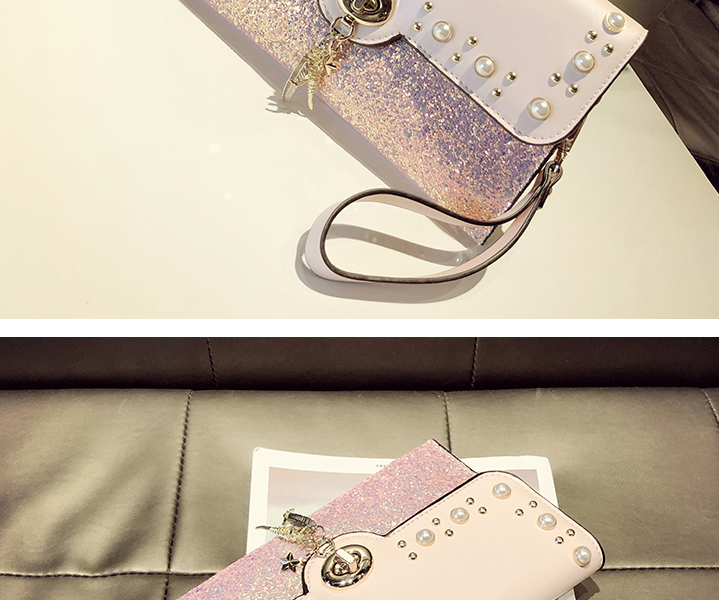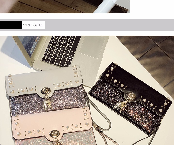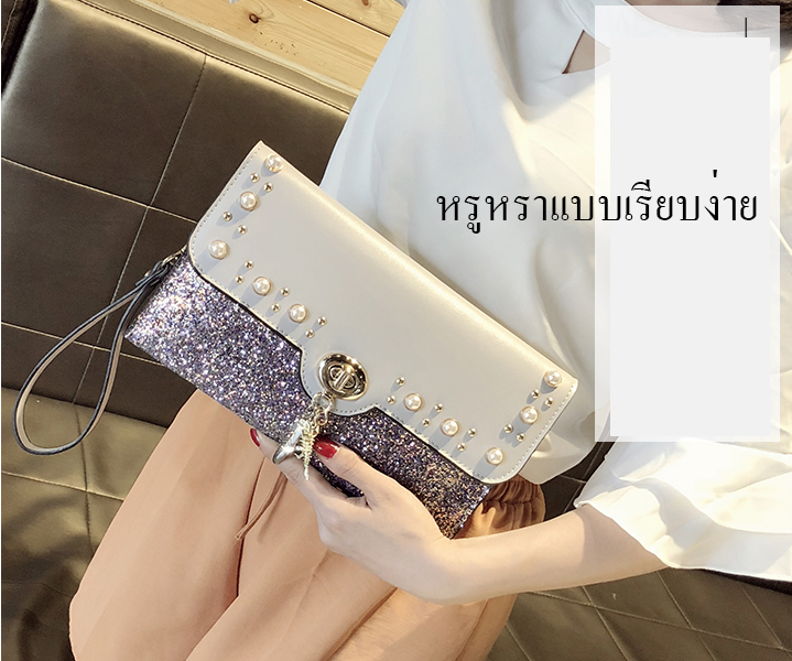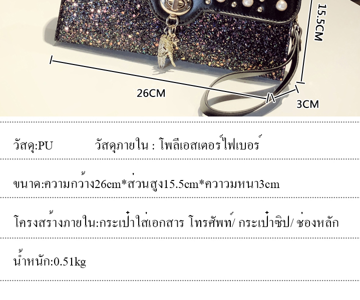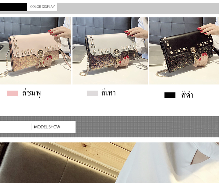 ถือกระเป๋าออกไปข้างนอกเเล้วดูดีมาก , ชอบที่ด้านบนมันมีกากเพชร , blingbling มาก