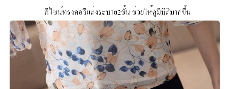 ดีไซน์ทรงคอวีแต่งระบาย2ชั้น ช่วยให้ดูมีมิติมากขึ้น