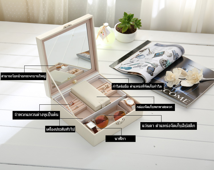 กล่องจัดเก็บเครื่องสำอางค์ทรงสี่เหลี่ยม