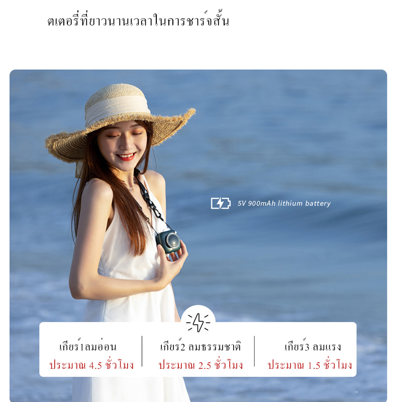 พัดลมแขวนคอขนาดเล็กน้ำหนักเบา ใช้งานสะดวกสบายมากพกพาไปทำงานกำลังดีชอบมากเลยค่ะ